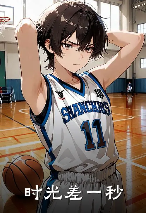 他额发被汗水浸得乌黑,桀骜地支棱着几缕,校服拉链敞开到胸口,露出里面粉红色的篮球背心,整个人像一团燃烧的、不知收敛的火。